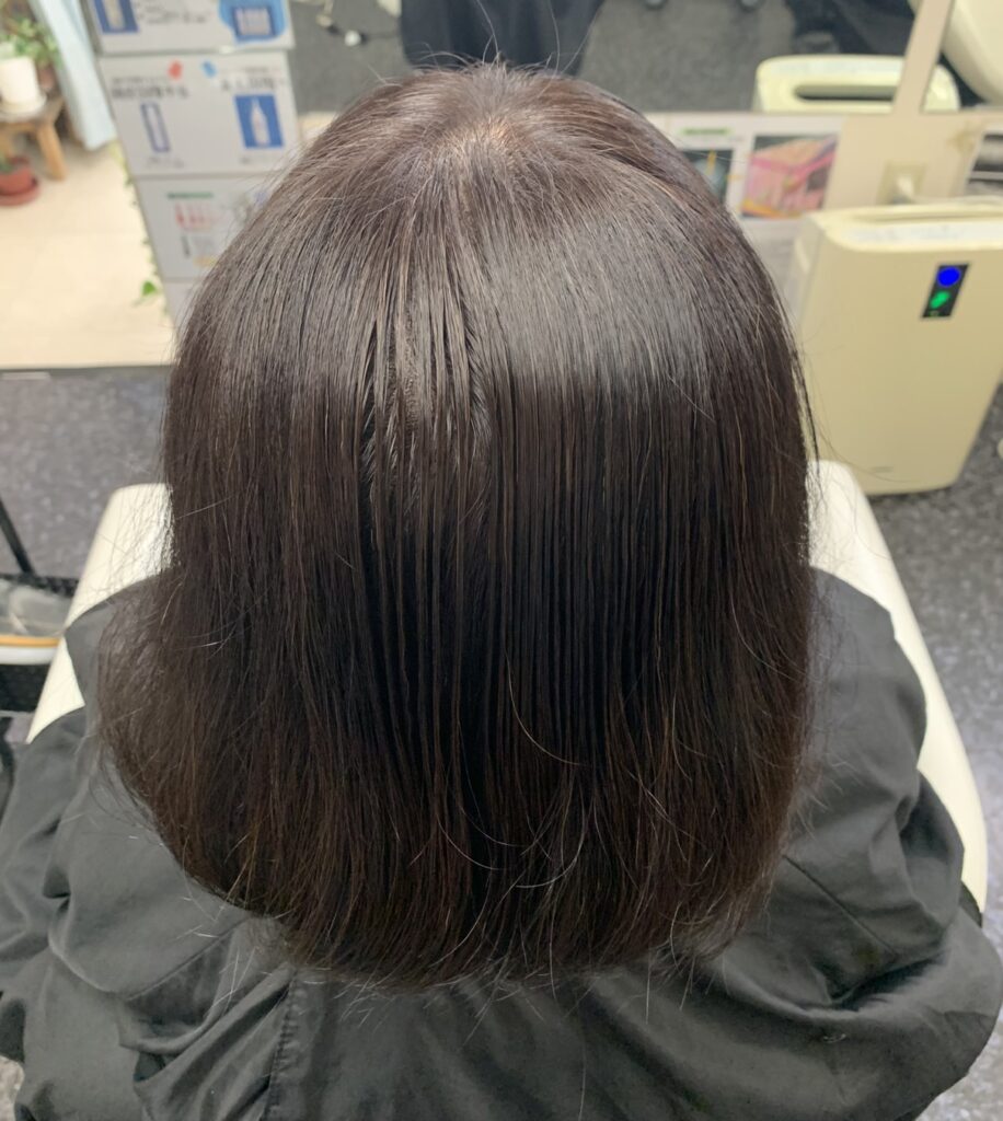 - 髪は太くしっかりしているが、毛先が少しまとまりにくくなっているためトリートメントでケア
